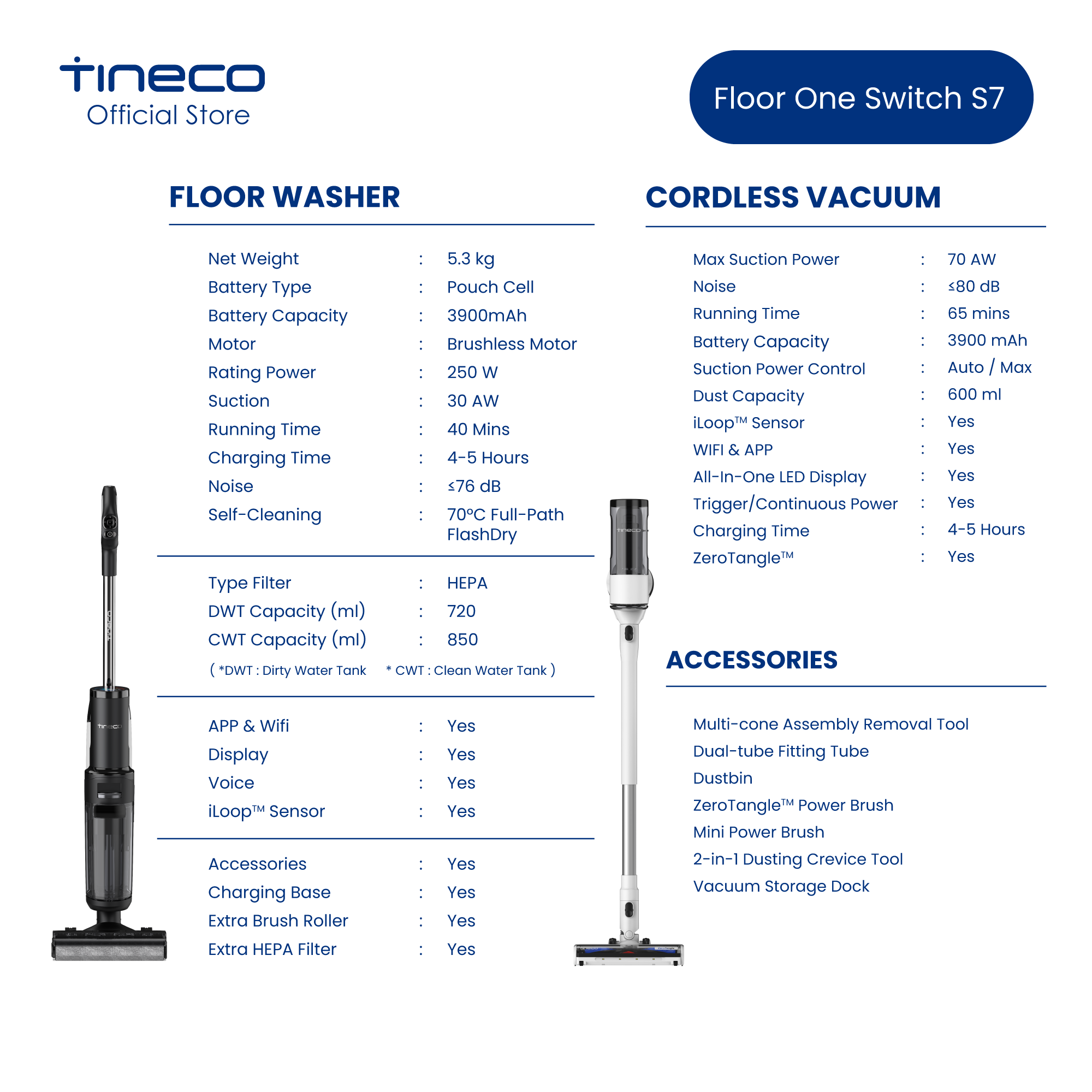 Tineco Floor One Switch S7 Smart Floor Washer Mop Vacuum Cleaner | 70°C FlashDry Self-Clean